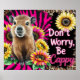Don't Worry, Be Cappy – Cute Capybara Sunflower Poster