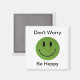 Don't Worry, Be Happy magnet. This green happy face with a white background is sure to cheer up anyone! Personalize it by changing the text and the background color! Make sure to check out my other products at zazzle.com/lsarmentoart*