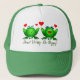 Dont Worry Be Hoppy Cute Cartoon Frogs w Hearts Trucker Hat