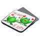 Here's a friendly pair of green cartoon frogs with a cool message - don't worry, be hoppy! in chic skinny dark red text. You can personalise this design and change the message if you like. The background colour is a nice pristine white. If you prefer a different colour you can change it using the customise tool. The options are endless. These two cute cartoon frogs are hand drawn with bright red love hearts. They were originally created for a video game, but the game is now lost in the annals of obsolete technology and these cute little froggies developed lives of their own! In myth and spirituality, frogs can represent singing and music, community or society, humour and comedy, night magic, dreams and intuition (associated with element Water, which also represents the flow of income in Feng Shui); frogs are also associated with good health and a healthy environment. This is a great mood lifter and always brings a smiled! Original artwork by M Sylvia Chaume, Canada. Hoppy blessings!