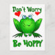 Dont Worry Be Hoppy Cute Green Frog w Hearts Postcard