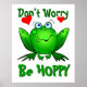 Dont Worry Be Hoppy Cute Green Frog w Hearts Poster