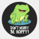 Don't Worry Be Hoppy Funny Happy Frog Pun Dark BG Classic Round Sticker