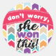 Don't worry, she won this sticker