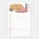 Personalised to do list pad which you can customise with your initials. The design features hand-drawn checkboxes, handlettering with modern abstract shapes and dashes. Writing things down, getting them done! is lettered in handwritten typography and has a neutral earthy colour palette of green yellow orange and red.