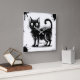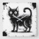 This striking clock showcases a grungy, doodle-style black cat as the centerpiece. The cat is drawn with rough, sketchy lines and a distressed texture, giving it an edgy, artistic feel. Black ink splatters surround the cat, adding a dynamic, raw energy to the design.