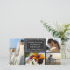 This thank you card features a chalk doodle border with chalkboard text. There is room for you to include 4 pictures from your special day.