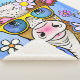 The fabric is really soft, and thick, I’m sitting here with it wrapped around me and it’s so warm! It’s really smooth and sleek on the printed side and fluffy on the back. I love it! Such good quality, so vibrant and clear, not blurry at all! See the photos I’ve attached, there’s no filters or anything on them!