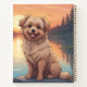 Cute Doodle Dog sitting by a lake at sunset. Puzzles, planners, notebooks ornaments tiles phone cases more.with this design in my stores. Add this image to other products. Add your own text too. Change background colour. Lots of pets in my store.
