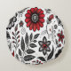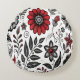 Doodle flowers and leaves in red and black round cushion