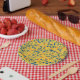 Doodle flowers in blue and yellow paper plate