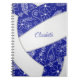 This cute volleyball themed notebook features the realistic image of an abstractly oversized volleyball that has blue and white panels with delicate hand-drawn doodle flowers, feathers and paislies in white patterned on the volleyball's blue panels - customise with the athlete's name - by katz_d_zynes