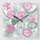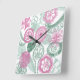 doodle flowers square wall clock