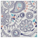 Modern doodle paisley pattern. Ornamental teardrop and floral motifs in a repeating seamless print in dark blue with bright blue and chestnut red accents. Set on a white background.