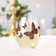 This design features a lovely orange and black monarch butterfly with varied geometric shapes decorating the patterns in the wings and the butterfly's body. This glassware is also available in can glass and rocks styles.
