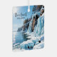 A Christmas ornament with an illustration of Door County, Wisconsin in the winter The pretty dune ledges covered in icicles and frozen blue ice, blue water of Lake Michigan hitting against the bluffs, Sun shining lighting up the sparkling snow and ice. The back of an ornament has a beautiful poem about Door County in the winter.