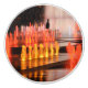 Door handle, abstract photo, of a man's silhouette walking through colorful fountains in the evening in Montreal. Title: 'Silhouettes', Montreal, Quebec, Canada. Marie-Ève LaBadie