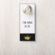 This door hanger is double sided and crowned with a gold king's crown at the bottom. Upper edges surrounded by a silver-grey border with sample text of "The King Is In". Customise this item to your liking with what ever colour or phrase you wish, or buy as designed.