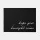 A black and white style door mat. "hope you brought wine" Simple style design with a little sass to add to your decor.