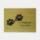 Polydactyl paw prints (seven toes each paw) on bamboo flooring background. Text reads "A Polydactyl Lives Here"