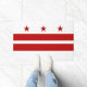 Welcome guests with Washington D.C. pride using our door mat featuring the flag of the District of Columbia! This door mat proudly displays Washington D.C.'s iconic flag design, which includes three red stars above two red bars on a white field.