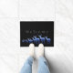 This doormat has an unusual heard of blue tones deer/elk walking across it. Unusual because the bodies of the deer/elk has a landscape scene all over them. Text of Welcome written in silver-grey colour above to greet you and your guest coming up to your door. Shown over black background. Customise this item or buy as designed.