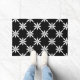This doormat is shown in a lovely black and white floral print design.
