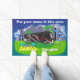This doormat can be customised to show your name on top. When used outside of your RV, people will know who they are talking to when they see you. Non-slip rubber that won't crack or buckle, this mat resists fading, mould, and mildew and can be easily cleaned with a hose. This version has a red Class A RV similar to an Entegra Aspire. It can be used indoors or out and makes a great welcome mat for your campsite, wherever you may go.