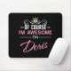 Of Course I'm Awesome I'm Doris - in mixed white and pretty pink casual and cursive font lettering with whimsical scroll accents and topped with a golden crown.