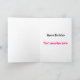 This card is great fun and good quality. I loved the humour inside and on the back. There is the opportunity to change the orientation of this card from landscape to portrait, which I did. It is relatively straightforward to amend the typeface to fit the new orientation. It was well packaged with no plastic. The printing on this card is excellent.