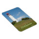 A photograph of the Dornbusch lighthouse on Schluckswieck Hill, Hiddensee, Mecklenburg Vorpommern, Germany is featured on this souvenir magnet.