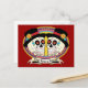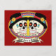 Two happy sugar skull grooms with a banner beneath that says "True Love is Forever". You can change the background colour and add text to personalise this postcard. This postcard works great for a "Save the Date" card!