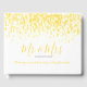 Yellow coloured watercolor art dabs fading to white modern Mr & Mrs guest book for weddings and anniversary events. Personalise with your own names message or events. Original abstract modern watercolour art and design by Sarah Trett. www.sarahtrett.com for www.mylittleedenweddings.com