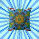 Dot Mandala Flower Blue Yellow and Green Cushion