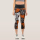 Dot Mandala Flower White Orange and Black Capri Leggings