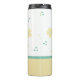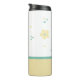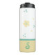 Pretty Thermal Tumbler done in teal, yellow, and white, with whimsical dots and flowers. Personalise the one letter monogram, on the front of the tumbler. Great gift idea for her.