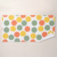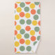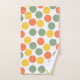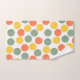 This towel set has a geometric design of dots in coral, gold, and sage green.