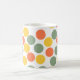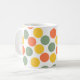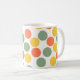 This mug has a geometric design of dots in coral, gold, and sage green.