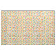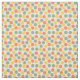 This fabric has a geometric design of dots in coral, gold, and sage green.