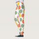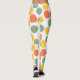 These leggings have a geometric design of dots in coral, gold, and sage green.