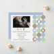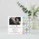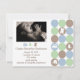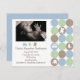 Cute boyish dot photo birth announcement perfect for a baby boy. Upload your digital photo and add your custom text. Features soft powder blue, sage and sandy brown circle dots with teddy bear silhouette, toy car, bird and elephant. Super cute style!