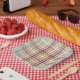 Square Paper Plates printed with Dotted Pastel Plaid Pattern pattern artwork design by TheFabricSeal at TheFabricSeal at Zazzle.com #ZazzleMade https://www.zazzle.com/store/thefabricseal