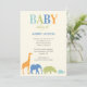 Charming dots and colourful animals come together to create a chic baby shower invitation that will capture the hearts of your guests. Also available in pink. Matching thank you cards available at berryberrysweet.com