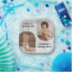 A modern joint Birthday party design featuring 2 of your own photos in an arched shape. You can change the colour of all of the text and the stars in this design.