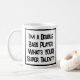 Funny slogan on a Coffee mug that says "I'm a Double Bass Player. What's YOUR super talent?". Coffee Mug for a Double Bass Player or someone who plays the Double Bass. Black and white bold text.