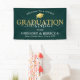 Double the celebration, double the fun! An simple joint graduation banner featuring a stylish green background that can be changed to any colour, a faux gold graduation cap and a modern double celebration template that is easy to personalise.