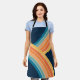 Abstract illustration of retro style rainbow design in yellow, orange, turquoise, blue, white colours on navy blue background for everybody who likes retro style colour palette and designs.