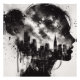 This captivating double exposure artwork features a girl's silhouette intertwined with a city skyline, symbolising healing, transformation, and connection to urban life. Rendered in black and white with a washed-out grunge texture, the piece blends human vulnerability with the strength of the city, evoking a sense of emotional and physical recovery. Ideal for those seeking a powerful, modern piece that speaks to the journey of healing and personal growth amidst the dynamic energy of the city.