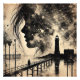 This mesmerising double exposure artwork features a girl’s portrait seamlessly blended with a starry sky, lighthouse, and flying seagulls, evoking a sense of mystery, freedom, and introspection. Rendered in black and white with a washed-out grunge texture, the piece captures the beauty of nature intertwined with human emotion. The lighthouse symbolises guidance and hope, while the seagulls add a sense of movement and escape. Perfect for those looking to add a modern, artistic, and thought-provoking touch to their space.