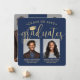 It's a double graduation! Announce the achievement of two graduates with stylish joint graduation custom photo square announcements. The pictures and wording are simple to personalise for announcement cards or grad party invitations. Additionally, the colours can be customised using the Zazzle design tool. (IMAGE PLACEMENT TIP: An easy way to position a photo exactly how you want is to crop it before uploading to the Zazzle website.) The modern navy blue and gold design features handwritten style script calligraphy with a mortar board cap, elegant classic typography, and four photos of your choice, such as senior pictures or images from the commencement ceremony. Please note that gold is printed colour, not metallic foil. This graduation invitation card is a stylish way to announce a special day celebration for any two grads, such as siblings, best friends, cousins, twins, brother and sister, etc. Congratulations to both of the graduates!